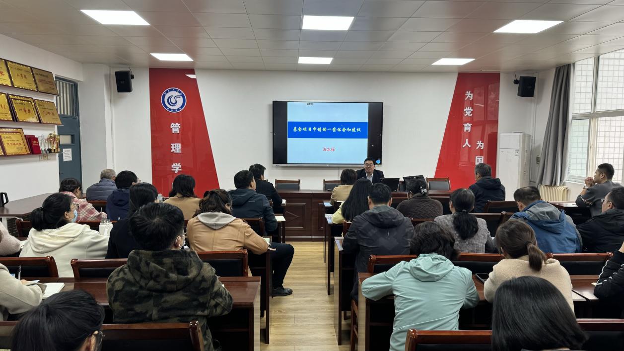 11月9日下午,河南师范大学商学院的海本禄教授为管理学院教师带来了一场题为“基金项目申请的体会与建议”的精彩科研讲座。此次讲座旨在分享海教授在科研项目申请方面的丰富经验和独到见解,为教师们提供有益的指导和建议。