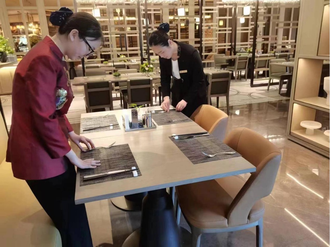 新乡国际会议中心雷迪森酒店于2023年成为我校酒店管理专业的实习合作单位。本次赛事接待人员受到酒店方面严苛的挑选,在经过2轮的初试和面试后,来自于管理学院酒店管理201班、酒店管理专升本221班的15名学生顺利入围,成为本次赛事接待工作志愿者。4月3日开始,学生参加了为期4天的接待培训,内容包括酒店安全、产品介绍、酒店讲解、服务意识、待客礼仪、酒店英语等应知应会知识,培训结束后立即被分配至餐饮部、客房部、前厅部参与正式接待。