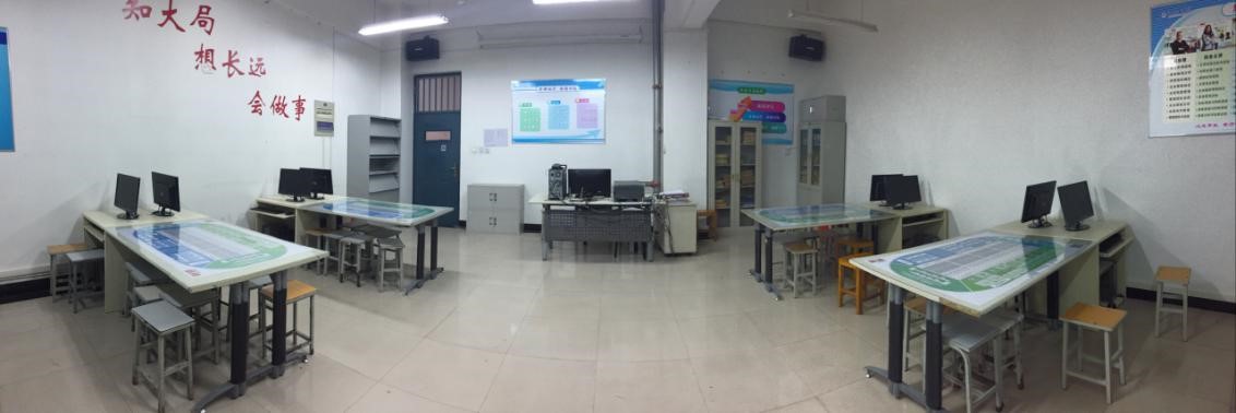 企业沙盘模拟实训室位于教2B107,面积约120平米。主要设备有计算机12台、投影及中控设备1套、沙盘专用桌椅12套。配备有新商道商战电子沙盘、新道企业经营管理沙盘等教学系统,资产价值31万余元。