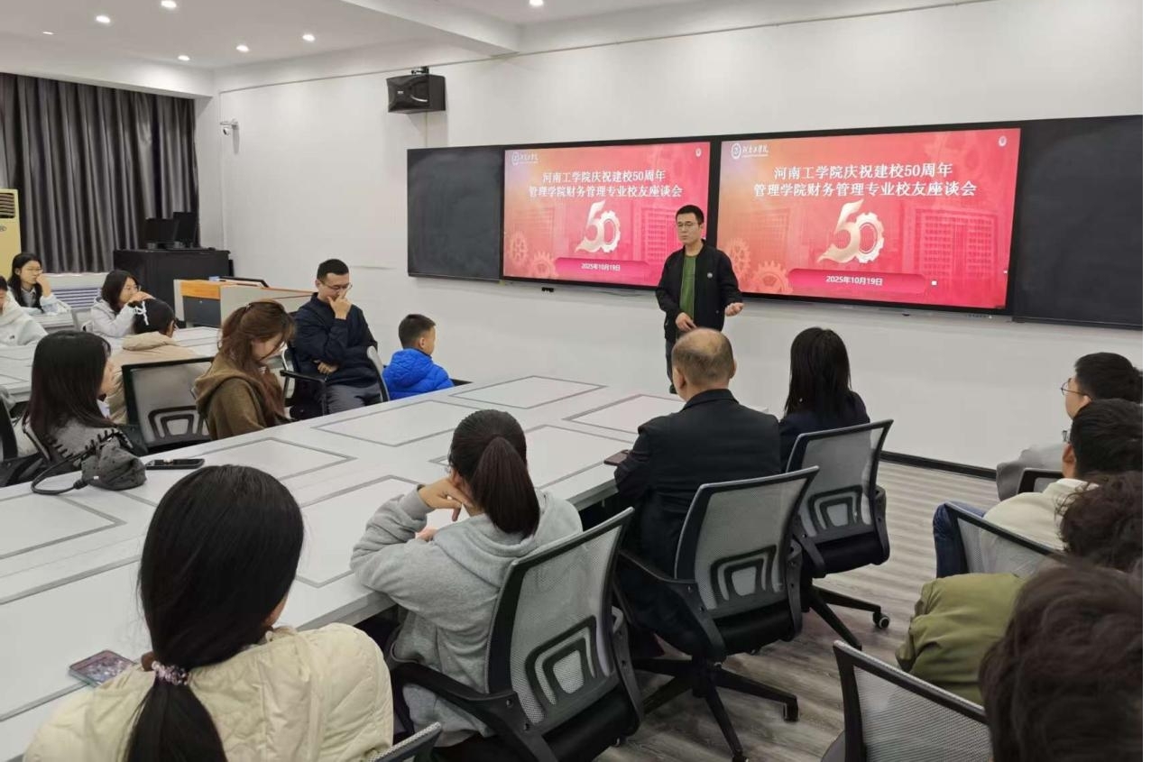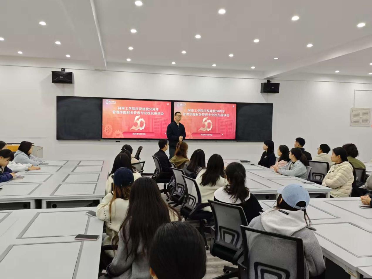 2025年10月19日,河南工学院迎来建校50周年,管理学院财务管理专业顺利举办校友座谈会。座谈会由财务管理教研室宋雷老师主持,邀请多位历届优秀校友返校,为 2025届本科新生分享学习与职场经验,最后由教研室主任李彩总结发言。
