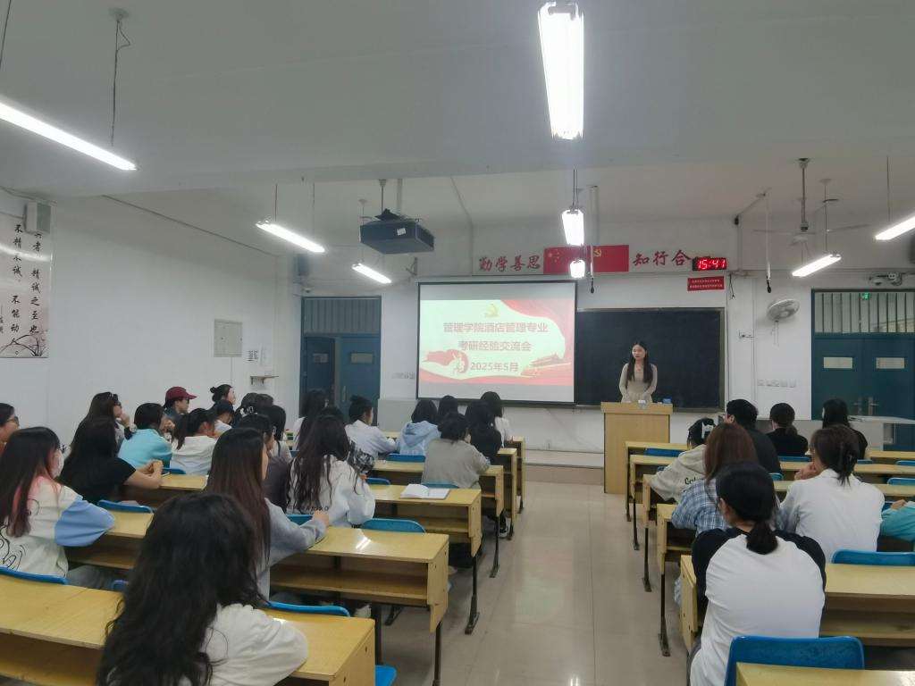 为帮助计划考研的同学提高学习效率,掌握高效备考方法,酒店管理专业于2025年5月23日下午3:30在教2楼B207举办了考研经验交流会。本次会议由刘金栋老师主持,酒店管理教研室教师及2022级酒店管理专业全体学生参加了交流会。
