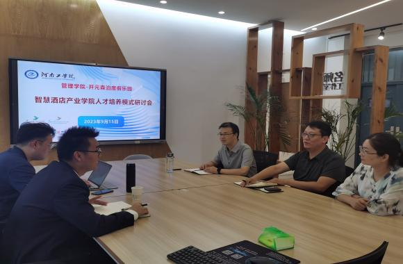 为建立深度校企合作关系,深化产教融合,促进人才培养与就业的有机联动,9月15日下午,管理学院召开了智慧酒店产业学院人才培养模式研讨会,开元森泊度假乐园的招聘经理单磊一行2人受邀参加。管理学院副院长刘勇强、酒店管理教研室主任刘巍、酒店教研室教师赵霞等相关老师参加交流研讨。