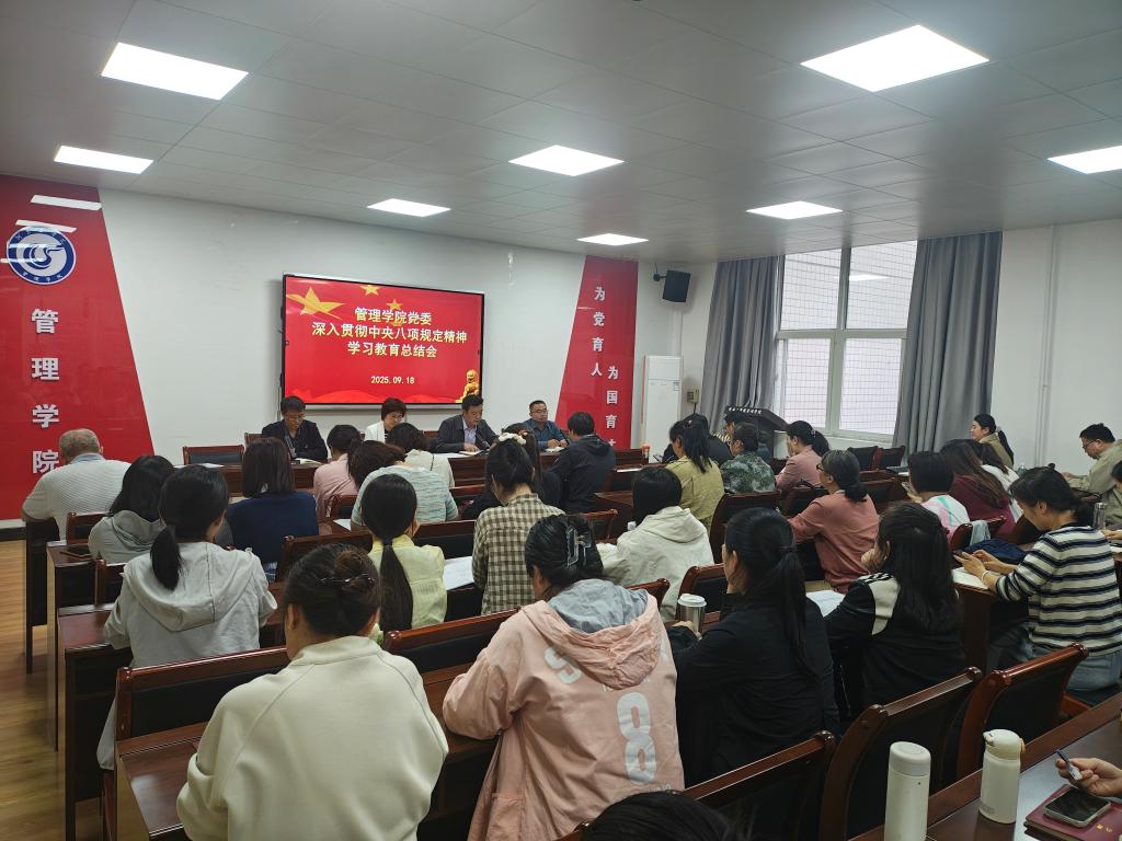9月18日下午,管理学院党委在教学2号楼B211会议室召开深入贯彻中央八项规定精神学习教育总结会。会议由学院党委书记刘永涛主持,全体党员参加会议。