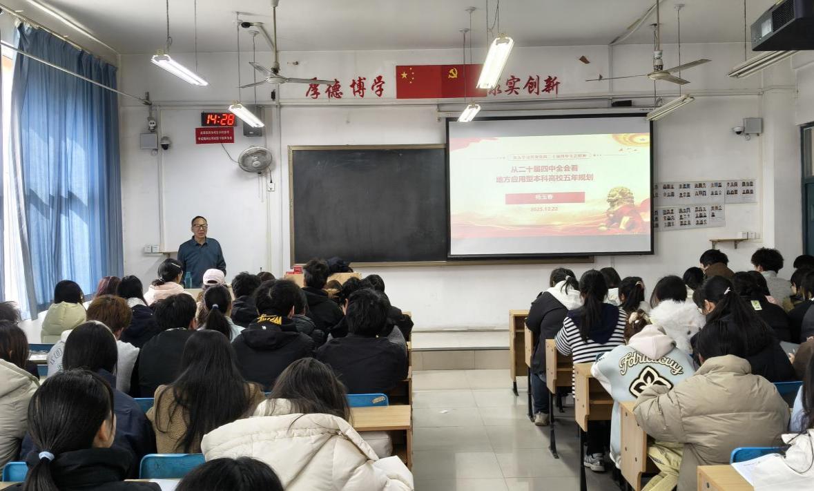 为深入学习贯彻党的二十届四中全会精神,推动全会精神走进课堂、走近师生,3月12日下午在教2楼B402教室,校党委宣讲团成员、发展规划处副处长杨玉春应邀为我院师生做学习贯彻党的二十届四中全会精神专题报告。