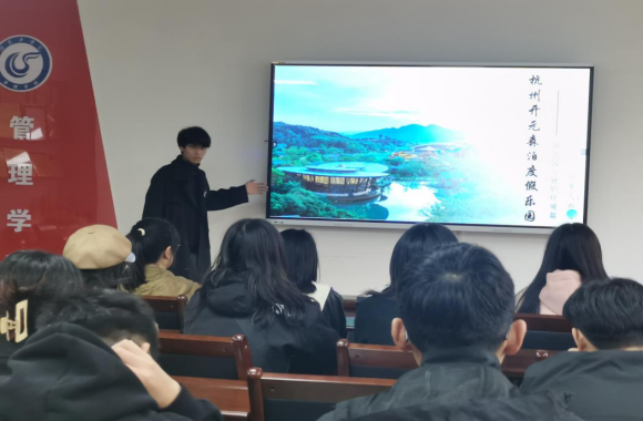 此次森泊研学之旅使三位同学对酒店管理专业有了更加深刻的体会,实现了理论与实践的结合。森泊之旅结束之后,三位同学将自己的所见所闻和心得体会形成PPT,以文字、照片、视频相结合的方式向2023级酒店管理的同学进行分享和交流。
