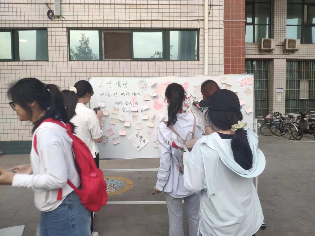 2024年5月20日,管理学院实训助理团在教学2号楼举办了“走出实验室之三行情诗”活动,吸引了我院众多师生积极参与。现场参与活动的师生在写下三行情诗后即可获得一枝玫瑰花束,玫瑰花束不仅是活动奖品,更是情感的信使。活动过程中,师生们纷纷拿起笔,以三行情诗的形式表达了对亲人、朋友、爱人以及祖国的深深眷恋和无尽感激。