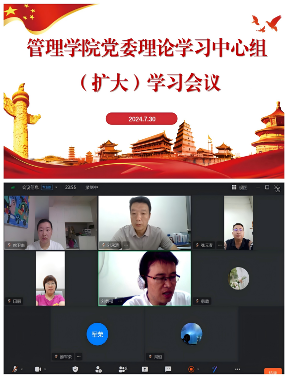 7月30日上午,管理学院党委召开理论学习中心组(扩大)学习会议,党委理论学习中心组全体成员参加了会议,副院长姬军荣列席会议。会议由学院党委书记刘永涛主持。